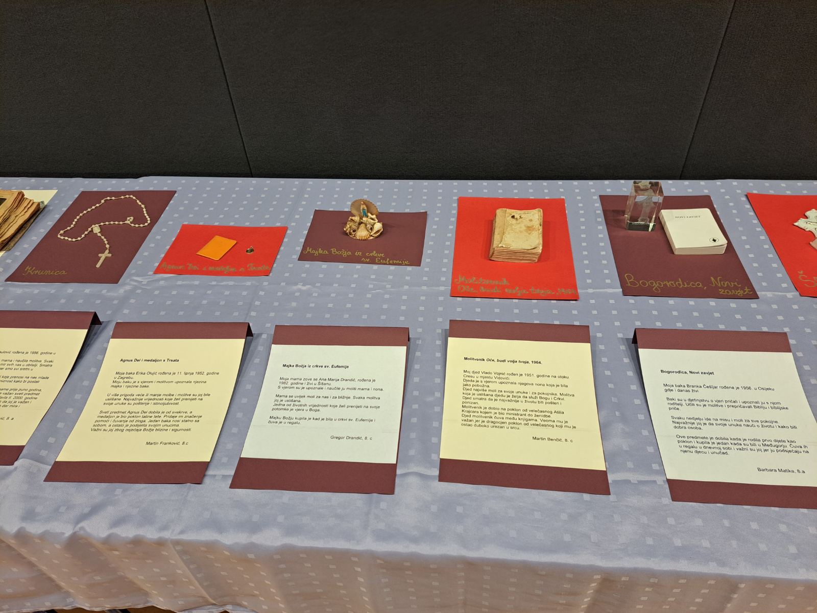 Učenici su prikupili i za izložbu pripremili sakralne  predmeta koje njihove bake, ali i djedovi i ostali stariji članovi obitelji, čuvaju kao svete i vrijedne. Nasljeđuju ih od starijih članova obitelji, prenose ih na mlađa pokoljenja. Iako moć molitve ne proizlazi iz samih predmeta, oni su simbol vjere i predanosti koji u sebi nose duhovnu snagu.