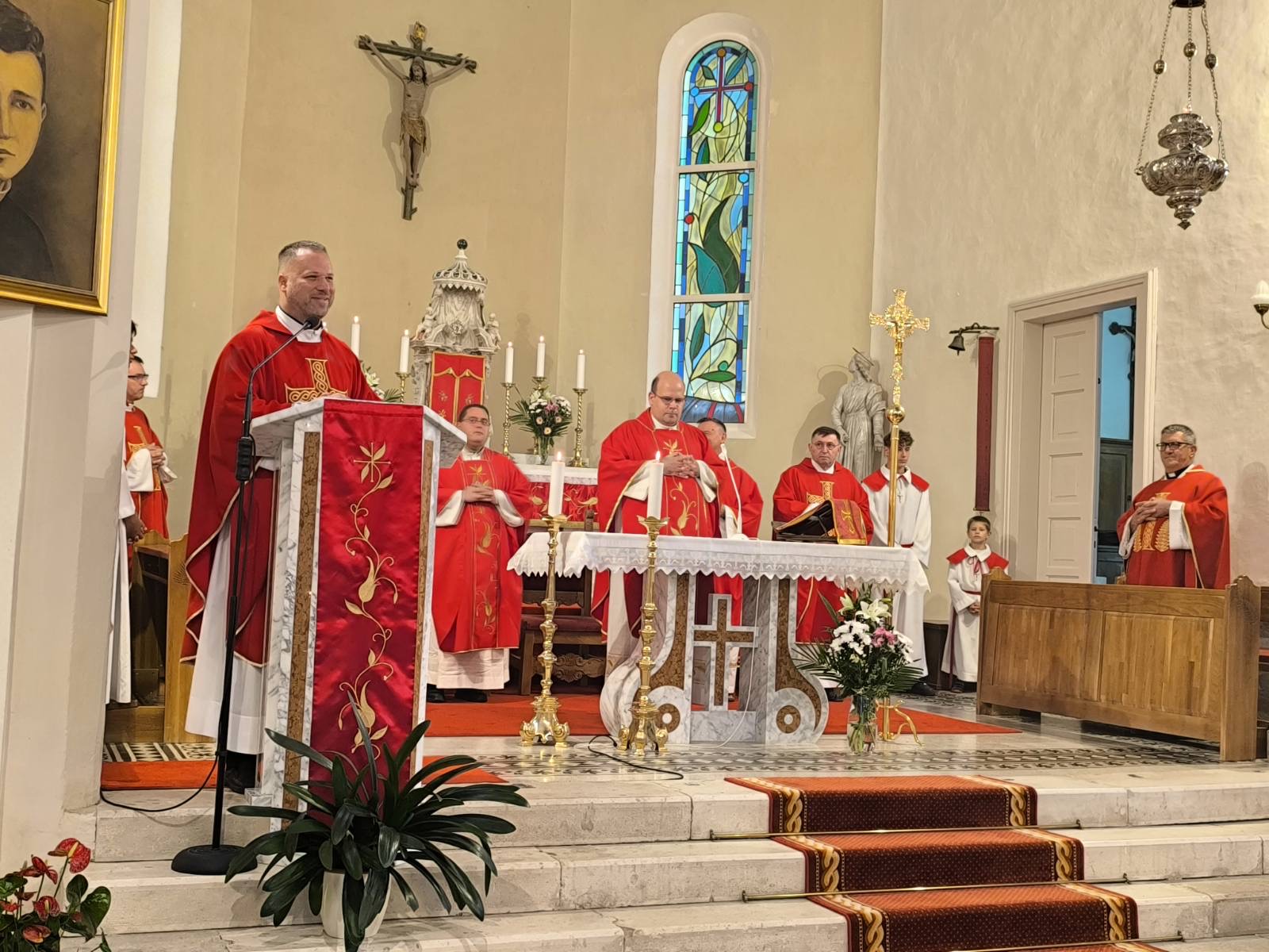 Pozdravljajući sve sudionike hodočašća propovjednik je naglasio: „Danas dolazimo na ovo sveto mjesto, ovdje u župu Svetvinčenat, gdje je rođen i odrastao, gdje je bio zaređen za svećenika i slavio svoju Mladu misu, bl. Miroslav Bulešić. Njegovo ime je upisano u kalendaru mučenika Crkve – ali je urezano i u našu istarsku povijest, u savjest našega naroda, u srce svakog vjernika i svećenika koji se pita: ‘Jesam li spreman u svom nasljedovanju Krista ići do kraja?’ Nismo se okupili kako bismo se samo prisjetili jednog životnog puta. Ovdje smo potaknuti vjerom koju ispovijedamo i slavimo, i jer nas bl. Miroslav danas poziva da odvažno slijedimo Krista. Naša vjera nije uspomena – vjera je pokret, hodočašće, hod našeg srca prema Bogu, ali i prema bližnjemu“.