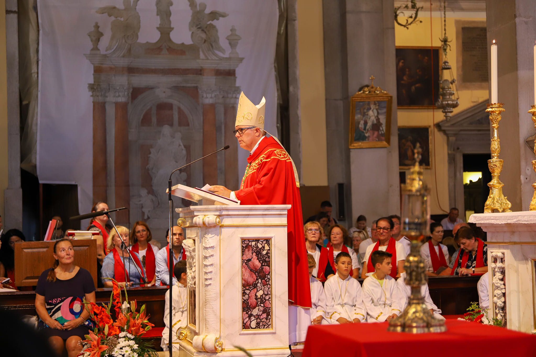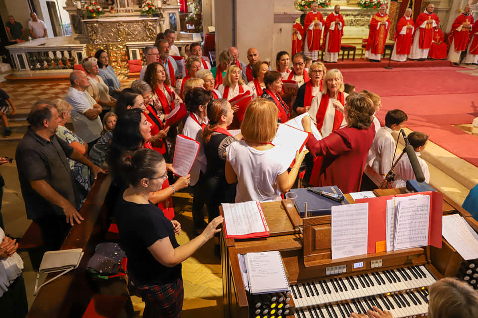 Večernje misno predvodio je porečki i pulski biskup u miru mons. Ivan Milovan, koji je prije preuzimanja biskupske službe bio više godina rovinjski župnik. Večernju je svečanu misu pjevanjem uzveličao župni zbor iz Trviža.