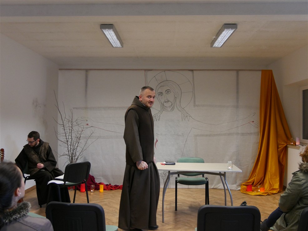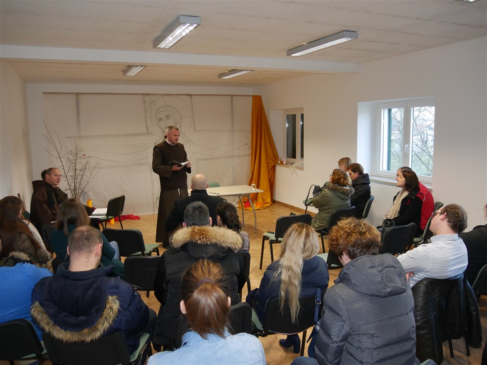Tridesetak mladih iz raznih dijelova biskupije sudjelovalo je, u jednoj od samostanskih dvorana duhovnom programu kojeg su vodili franjevci iz tog samostana: fra Josip Vlašić, fra Darko Tepert, fra Drago Vujević i fra Marinko Klaić. Nakon uvodnog pozdrava duhovni nagovor održao je fra Josip Vlašić. On je izlaganje započeo spomenuvši Nikodema te pojasnivši kontekst njegove želje i okolnosti njegovog susreta a Isusom. Na njegovim je primjeru sistematski prikazao koji su neophodni preduvjeti za naš susret s Isusom u ovoj korizmi: odluka, volja, realizacija konkretnih okolnosti kada i gdje te askeza, pokora, kojom se, umanjujući neku ugodu kako bi činili dobro bližnjemu, približavamo Bogu. Predavač je nadalje pojasnio pojam tri vrste ‘duhovne noći’: ‘noć duše’ kada se Bog zaogrne mrakom kao koprenom kako ga čovjek ne bi ljubio zbog darova, već zbog njega samoga, rekao je fra Josip, potom ‘noć grijeha’ u koju se čovjek dovede neurednim životom, te ‘noć srca’, kada čovjek moli Boga da ga prosvijetli o njegovu životu. Govoreći nadalje o Nikodemovom susretu s Isusom fra Josip je pojasnio pojam novog početka koji se ondje spominje, riječ je o novom rođenju Duhom Svetim, o novom početku s novim srcem kojeg osjete oni koji, susrevši Isusa, dožive iskreno obraćenje.