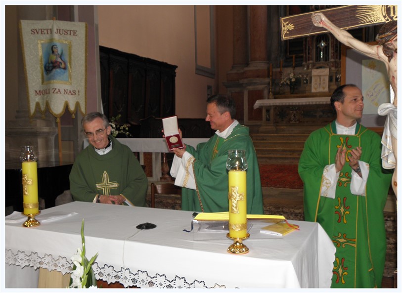 Uz svečara koncelebrirali su preč. Sergije Jelenić, kancelar biskupije koji je na kraju slavljeniku svečano uručio biskupijsko priznanje za 25 službe, vlč. Želimir Bagavac te vlč. Aleksandar Petrović. Na tom su se misnom slavlju, osim domaćih župljana, okupili brojni vjernici iz ostalih župa Labinskog dekanata, kao iz župa gdje je slavljenik prethodno djelovao.