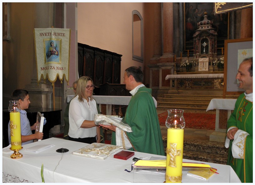 Na kraju misnoga slavlja preč Jelenić je svečaru, u ime biskupa ordinarija mons. dr. Dražena Kutleše uručio biskupijsko priznanje i srebrnu plakatu za 25. godina svećeničkog djelovanja. To je priznanje vanjski znak, ali predstavlja život svećenika za Crkvu, za narod Božji, za ono na što je i pozvan i na što ga Bog, po biskupu, šalje u pojedine crkve i župe. Vlč. Mirko je do sada bio na mnogo župa, e teče evo deveta godina da je ovdje s nama u Istri. Nadamo se da će on, u suradnji s vama, u zajedništvu, u molitvi i povezanosti učiniti sve da ova Crkva, ova zajednica napreduje, na ponos Bogu, našoj Crkvi, biskupu, njemu samome i svima vama, dragi vjernici. Kancelar je nadalje pohvalio svečanost liturgije i pjevanje, te neka nam to bude poticaj za dalje, da budemo suradnici svećeniku, a on vaš pomoćnik i duhovni otac. U to ime, Mirko predajem ti ovo priznanje u ime gospodina biskupa.