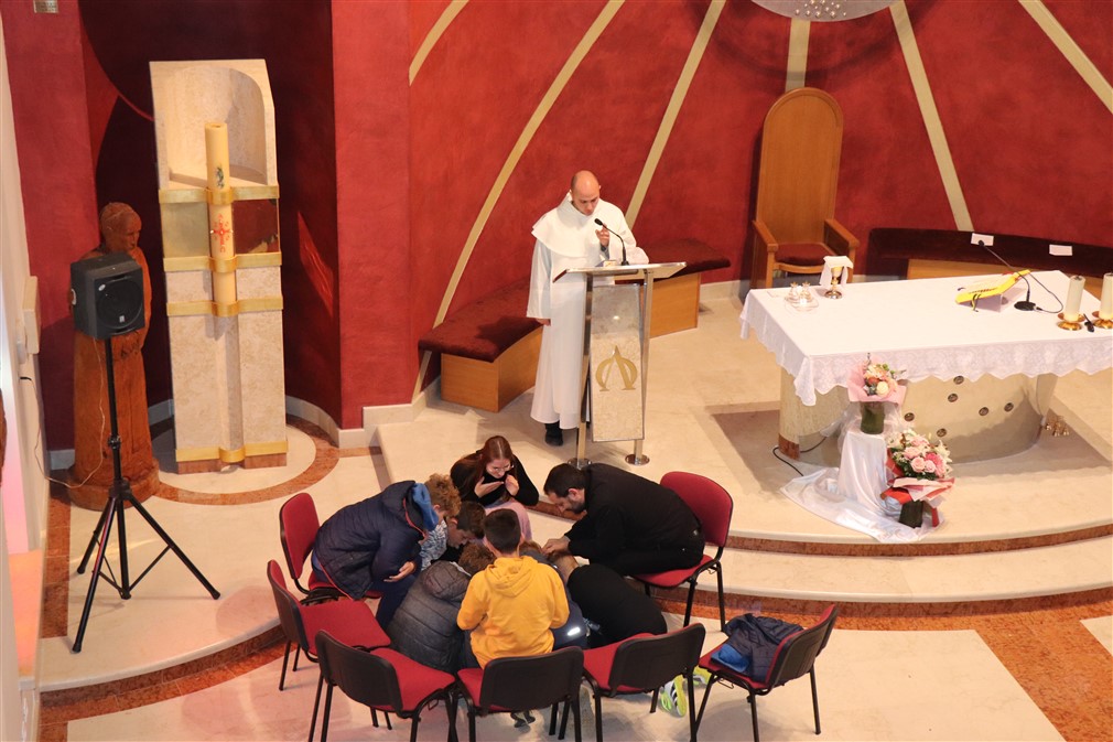 „Svaka crkva ima oltar, i na njoj se Isus dijeli. On svoje tijelo daje svako od nas kroz kruh i vino, i tako želi doći do svakoga srca“, nastavio je propovjednik. „Želi podijeliti svoj božanski život sa svakim od nas, i nas poziva da i mi znamo dijeliti s drugima ono što imamo, da ne gledamo samo na sebe.“ „Ministrant znači onaj koji gleda i pazi na drugoga, a to najbolje učimo oko oltara na svetoj misi. Tu učimo kako biti pažljiv prema drugome. Pažljivi ste prema svećeniku kojemu pomažete: u pravi trenutak dajemo mu vino i vodu, perete mu ruke, zvonite, sve činite u pravi trenutak. Isto tako i u svakodnevici kada se družite s prijateljima u igri, ne gledajte samo sebe, već znajte biti pozorni i pažljivi, usmjereni na drugog čovjeka“, rekao je na kraju homilije propovjednik.
