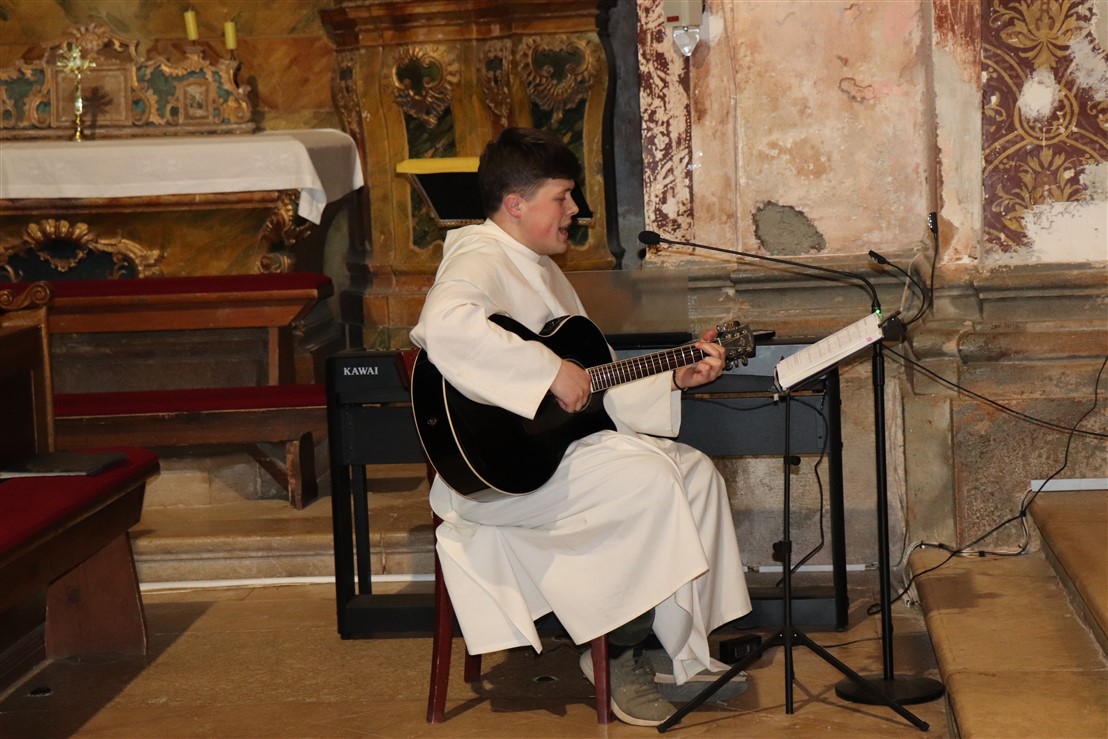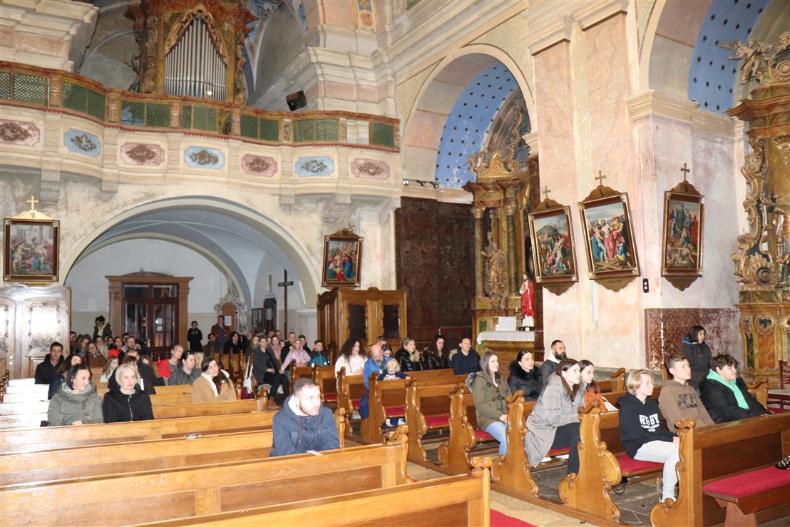 Nakon kateheze p. Jure je predvodio misno slavlje, uz koncelebraciju vlč. Dragutina Petrovića, a p. Vinko Vuković je svirajući gitaru glazbeno animirao misu i kasnije klanjanje pred Presvetim Oltarskim Sakramentom.