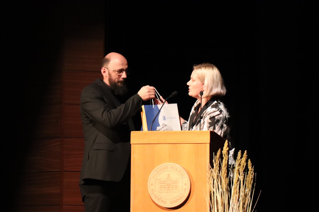 Gradonačelnica Suzana Jašić na početku je svoga obraćanja istaknula da je Pazin prije 30 godina dobio najbolju moguću „investiciju“. Zahvalila je Kolegiju na višestrukoj važnoj ulozi u kvaliteti i širini obrazovnih mogućnosti koje su njegovim postojanjem pružene mladima Pazinštine, ali i Istre općenito. Potvrdila je da je diljem Europe srela bivše učenike Kolegija koji se rado sjećaju svojeg srednjoškolskog obrazovanja. Gradonačelnica je vlč. Ferlinu predala dvije knjige o Pazinu, na dar sadašnjim i budućim učenicima Pazinskoga kolegija.
