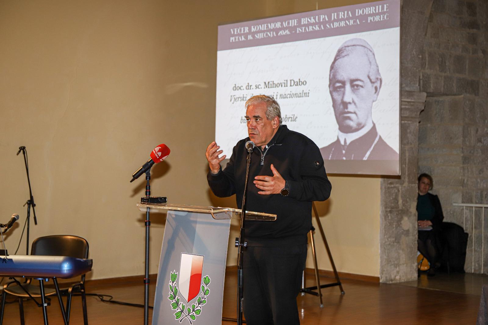 Nalazimo se u sabornici u koju je redovito dolazio biskup Dobrila. Ovdje je držao govore, izricao svoje ideje i borio se za prava svoga naroda. Večeras se želimo prisjetiti njegova života, kako bismo ponovno i ponovno prepoznali snagu njegovih ideja i trajnu vrijednost njegova djela. Dr. Juraj Dobrila nije bio samo biskup svoga vremena nego i vizionar, čovjek duboke vjere u još dublje ljubavi prema čovjeku, osobito prema malima, siromašnima i potlačenima.