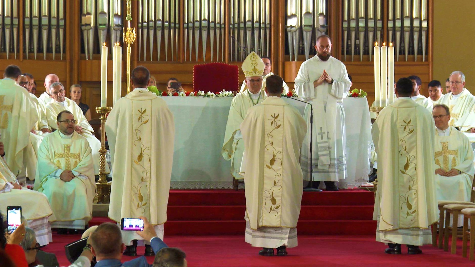Slijedio je čin obećanja izabranika, litanije, posvetna molitva, oblačenje misnog odijela, pomazivanje dlanova, predavanje euharistijskih darova kruha i vina te cjelov mira.