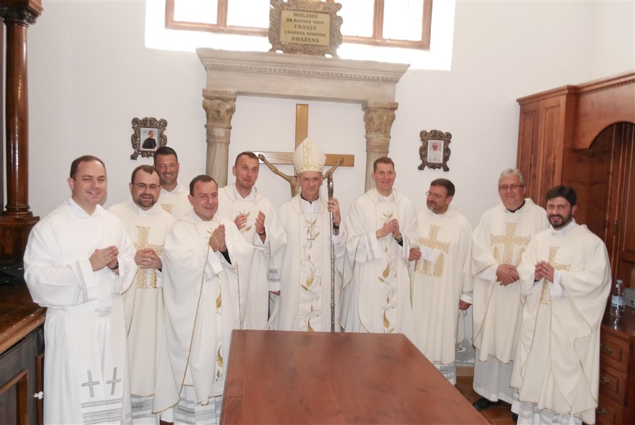 Biskup je na početku prigodne homilije iznio razmišljanje o Prvom starozavjetnom čitanju, od proroka Malahije, koji upućuje svoje riječi u prvom redu svećenicima i opominje ih, te se riječi mogu uputiti i danas svima nama, no znajući da ima i danas svećenika koji savjesno vrše svoju službu, rekao je biskup. Prva opomena odnosi se na nemar prema žrtveniku Božjem, nemar prema oltaru. Do toga dolazi, prema prorokovim riječima, jer su zanemarili neokaljanu žrtvu, prinosili su neprikladne žrtve, nisu iskazivali dostojnu čast Bogu, iako je to bio njihov poziv. Uvijek kada prilazite oltaru trebate biti svjesni da morate iskazivati čast Bogu jer bez njega ste nitko i ništa, rekao je propovjednik svećenicima. Potrebno je pridržavati se onoga što su vas formatori u sjemeništu učili, i biti neokaljani svećenik koji živi uzorno i moralno. Samo tako ćete znati živjeti ono što vam je propisano. Budite ono što od Vas Isus Krist i Crkva traže, budite moralni, pošteni, i budite ono što od vas vaši vjernici traže. Nadalje, nastavio je biskup, pravi svećenik je i žrtva i svećenik, koji prikazuje samoga sebe i prikazuje žrtvu Bogu, samo tako može prikazivati i tuđe žrtve. Malahija govori da će prokleti svećenički blagoslov, zbog onih koji se nisu pridržavali Levijeva zakona. Do nedostataka u svećeničkom djelovanju, danas kao i u vrijeme proroka Malahije, dolazi zbog tri razloga: iako poznaju Riječ Božju svećenici se je ne pridržavaju jer je nisu prihvatili u svome srcu, svećenik će moći istinski naviještati Riječ Božju i istinski smisao života samo ako je s Riječju istinski povezan i ako je živi, treći razlog poteškoća u svećeničkome djelovanju je nedostatak vječne vizije do čega dolazi kada je čovjek zaokupljen samo ovozemaljskim.
