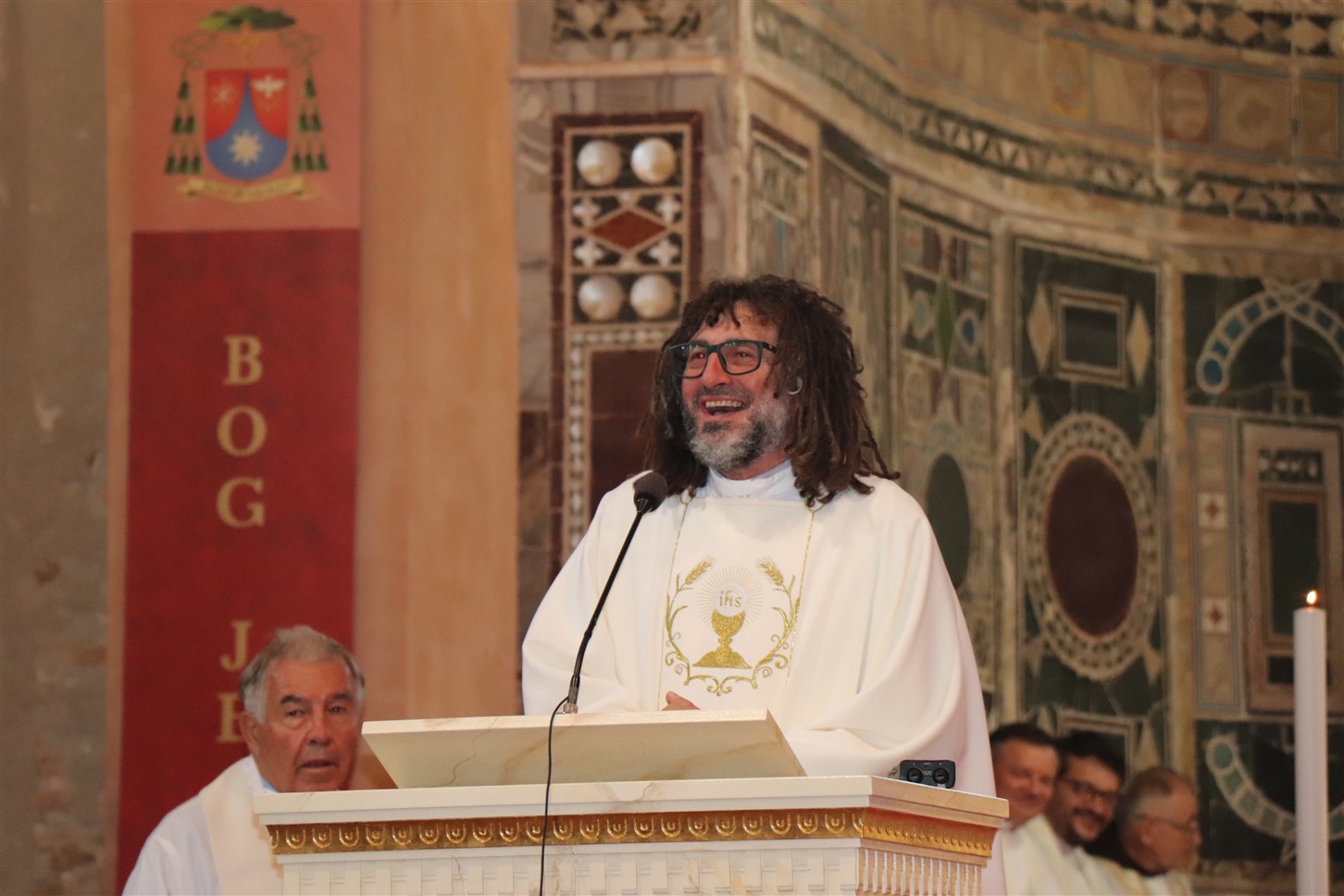 Don Velimir Tomić svećenik je Mostarsko-duvanjske biskupije. Rođen je 8. listopada 1961. godine u Vukovaru. Zaređen je za svećenika 29. lipnja 1986. u Mostaru. U misije je otišao 18. rujna 1988. godine. U svom je svjedočanstvu, uz ostalo, pozvao sve nazočne na večernjoj misi u bazilici da dođu na posvetu velke nove crkve koju je njegova misija izgradila u Župi Kisongo u Biksupiji Arusha u Tanzaniji. Poslušajte :