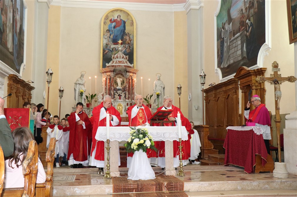 Misu je zaključio himan „Tebe Boga slavimo“. Lijepa, dostojanstvena svečanost župnih patrona i dijamantnog jubileja u toj omanjoj župi središnje Istre pokazala je da je, ne samo tradicija vjere već i živa vjera u tom dijelu Krasne Zemlje itekako prisutna, a napose veseli konzistentna prisutnost na misi brojnih mladih obitelji, mahom s većim brojem djece.