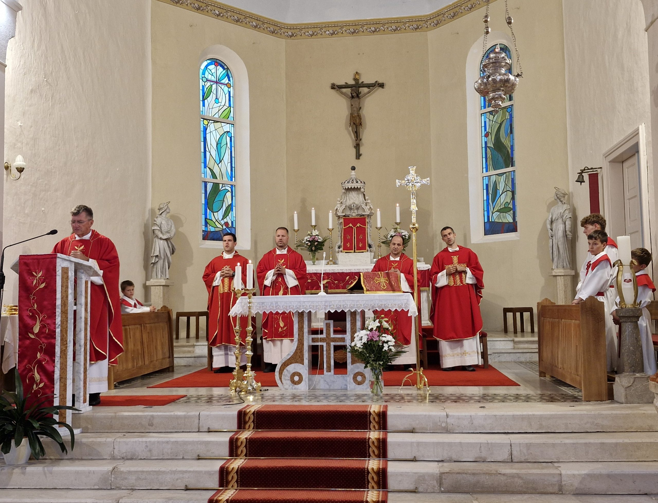 Misno slavlje predvodio je i propovijedao porečki dekan Lino Zohil. Uz domaćeg župnika Josipa Mašinu, koncelebrirali su: Želimir Bagavac, Tobija Matijević i o. Ivan Dominik Iličić, OP. Liturgijsko pjevanje predvodili su udruženi pjevači porečkog dekanata, uz orguljašku pratnju s. M. Monike Ikić.