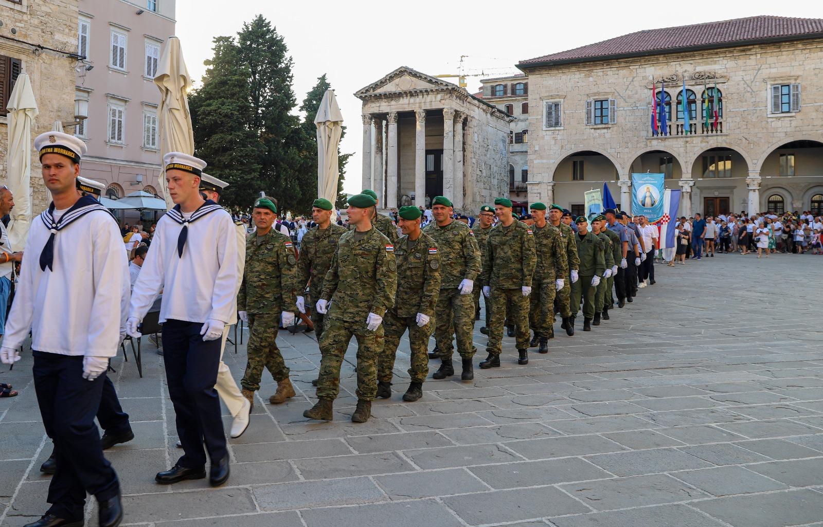 Članovi Orkestra oružanih snaga RH te članovi policijske klape „Sv. Mihovil“ s ujedinjenim članovima župnih zborova grada Pule i okolice animirali su liturgijsko pjevanje. Udruženim zborovima ravnala je s. M. Monika Ikić uz orguljsku pranju Veronike Ravlić.