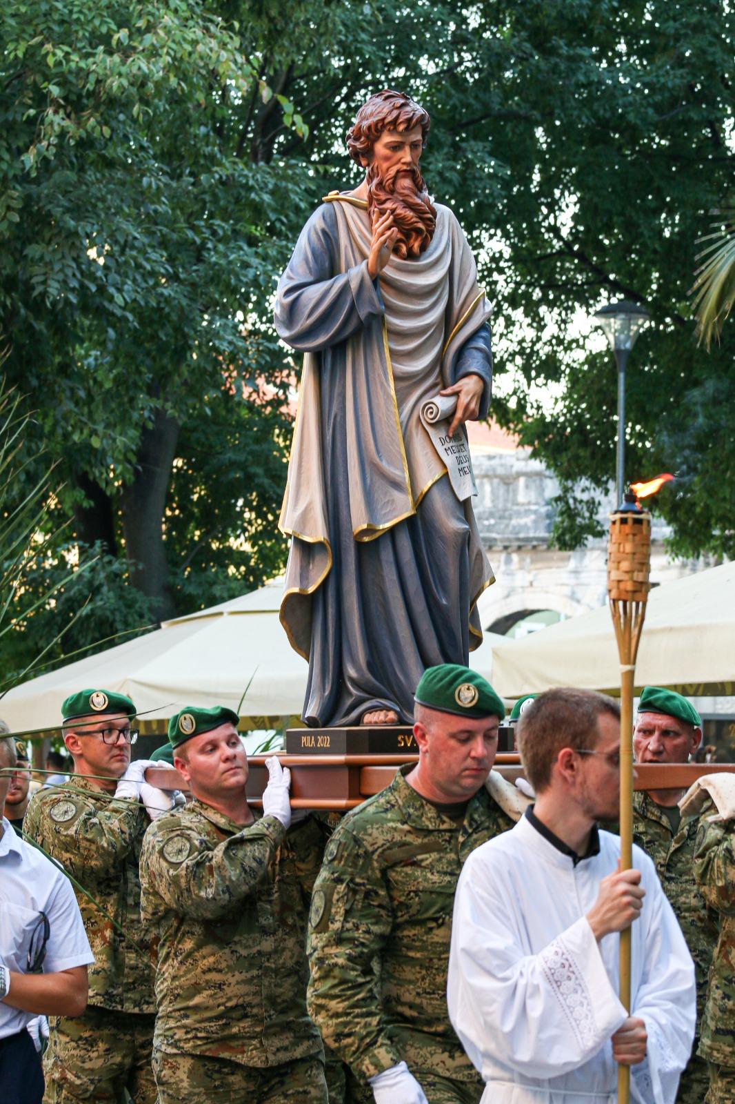 Po završetku misnoga slavlja održana je procesija starogradskom jezgrom Pule s relikvijama i kipom sv. Tome. Prije procesije vojni ordinarij biskup Bogdan pozdravio je sve nazočne, zahvalio mjesnom biskupu Štironji na otvorenosti za pokrajinska hodočašća koje Vojni ordinarijat organizira širom Republike Hrvatske. Pozvao je sve nazočne na pobožnost molitve krunice te svima koji su to zaželjeli poklonio krunicu. Poslije toga je krenula procesija ulicama grada Pule. U nošenju kipa izmjenjivali su se predstavnici raznih rodova vojske i policije, a po povratku u katedralu predvoditelj je molio pred kipom sv. Tome te okupljenima udijelio blagoslov.