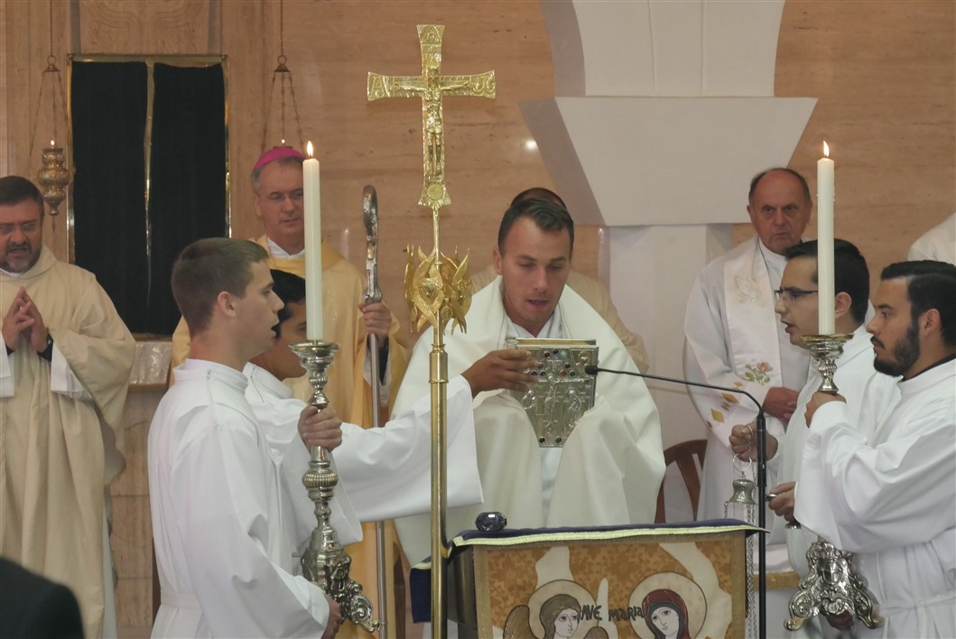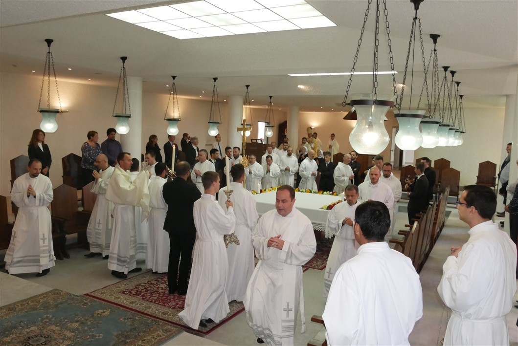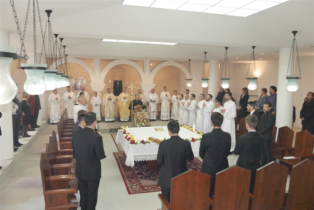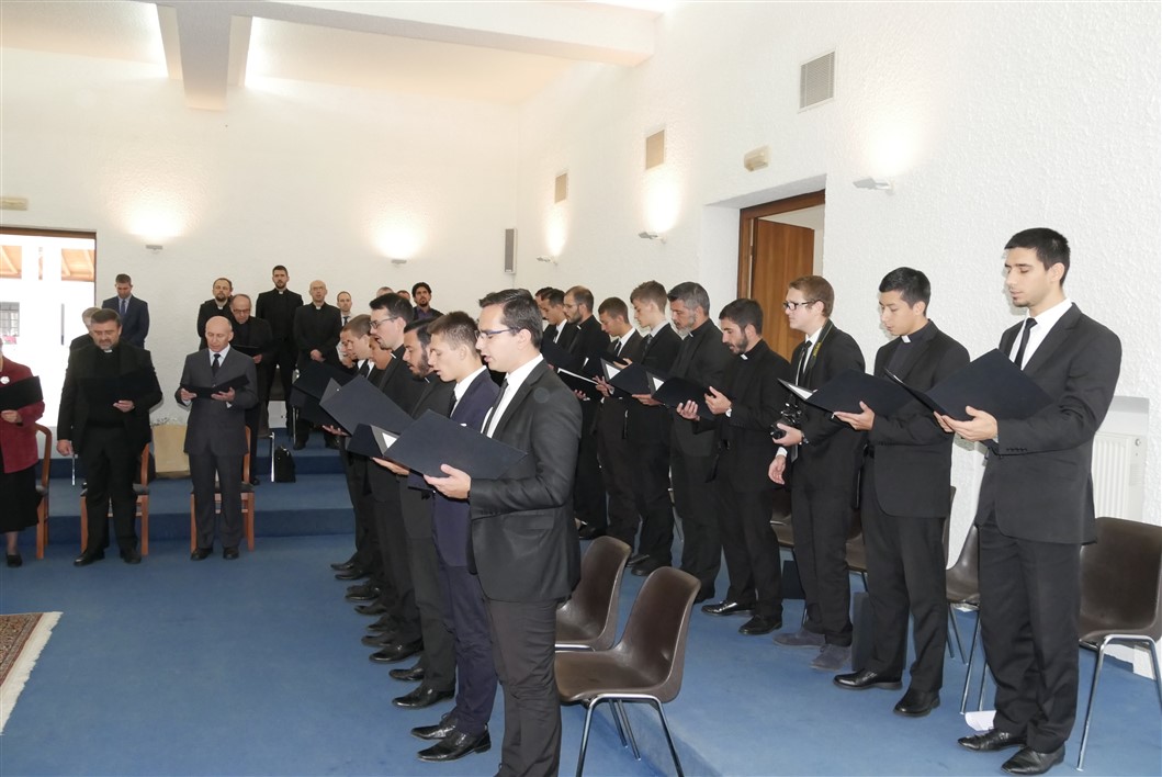 Nakon kratke pauze uslijedilo je misno slavlje u kapeli sjemeništa koje je predvodio nadbiskup Kutleša uz koncelebraciju tridesetak okupljenih svećenika. Predslavitelj je u prigodnoj homiliji istaknuo važnost priznavanja, najprije sebi samima, da smo grješnici. Rastumačio je grijeh kroz pet različitih novozavjetnih grčkih termina. Hamartija znači promašiti svoj cilj, propovjednik je preporučio bogoslovima da ne promaše cilj, već da završe započeti filozofsko-teološki studij te da postanu svećenici i ljudi dobre volje temeljeni u Kristu. Drugi izraz kojim se spominje grijeh je parabasis, što znači prijeći crtu, naglasio je bogoslovima da trebaju biti osposobljeni kako ne bi prešli crtu, napose u međuljudskim odnosima. Treća riječ koja označava grijeh je paraptoma, okliznuti se, predvoditelj je preporučio bogoslovima neka se čuvaju grijeha i neka budu svjesni, da im je zbog njihove ljudske slabosti potrebna Božja milost. Anomia, bezakonje, sljedeća je riječ koja označava grijeh; čovjek često vidi dobro i odobrava ga, ali ipak čini zlo. Tako često čine mladi ljudi koji su skloni nekakvoj mladenačkoj pobuni. Peti izraz je ofelima, što znači imati neki dug i biti svjestan da smo uvijek dužni Bogu za ono što smo dobili, naglasio je propovjednik. Zaključio je naglasivši kako svećenici nikada ne smiju odustati od razlučivanja dobra i zla, uvijek moraju znati što i zašto vjeruju, te moraju biti pošteni ljudi koji znaju naviještati čovjekoljublje i kristoljublje, rekao je mons. Kulteša te završio homiliju zazivom zagovora Blažene Djevice Marije na cijelo sjemenište. Program je završen zajedničkim objedom. (G. Krizman)