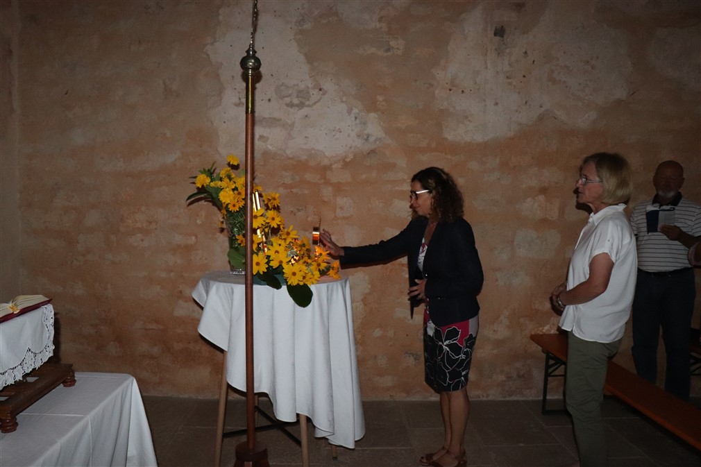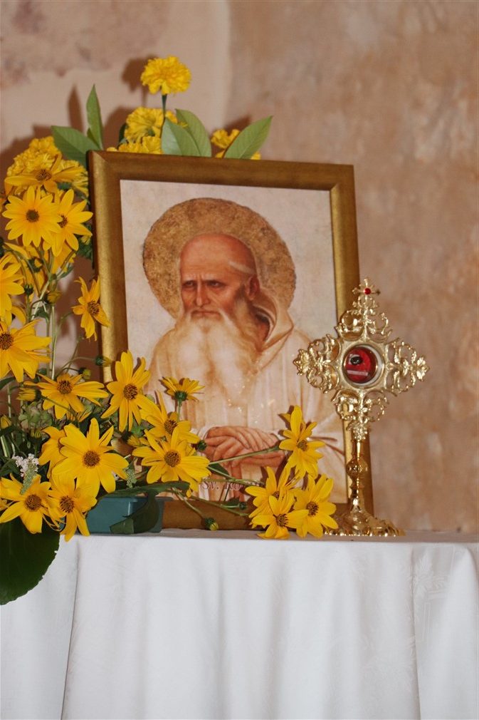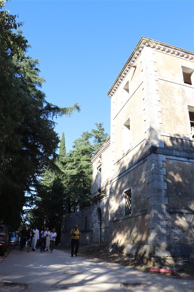 Program je započeo pobožnošću krunice. Uslijedilo je izlaganje povjesničara Marina Martinčevića, doktoranda na poslijediplomskom studiju povijesti Hrvatskog katoličkog sveučilišta, on je ukratko okupljenima približio tisućljetnu povijest tog samostanskog kompleksa. Crkvu sv. Mihovila posvetio je oko 1040. godine porečki biskup Engelmar. U njegovo vrijeme nastale su u tom samostanu freske iz Otonske škole, u kojoj su vješto spojeni bizantski i zapadni utjecaji. Najpoznatiji je prikaz kamenovanja sv. Stjepana. Na desnom zidu je freska koja, prema tradiciji, prikazuje sv. Romualda. Početkom 14. stoljeća ondje su boravili templari. Krajem 14. i u 15. stoljeću redovnički život otaca kamaldoljana se u samostanu oživljava, postoje brojni zapisi o djelovanju redovnika, a samostan biva upravom pripojen venecijanskim samostanima. Za održavanje samostana je u jednom je periodu bio zadužen jedan porečki kanonik. Krajem 18. stoljeća monasi opatije sv. Matije iz Venecije, zbog udaljenosti, mijenjaju samostan za jedan posjed obitelji Coletti iz Conegliana. Tada kompleks postaje ladanjska palača u klasicističkom stilu. Nakon gašenja te plemićke obitelji samostan prelazi u državno vlasništvo, većinu vremena neupotrebljavan, što je na neki način sačuvalo postojeće freske u izvornom obliku.