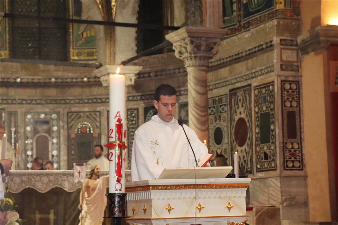 Na Veliku subotu, 30. ožujka, Vazmeno bdjenje je u porečkoj katedrali Uznesenja Blažene Djevice Marije predvodio porečki i pulski biskup mons. Ivan Štironja u suslavlju s kancelarom biskupije mons. Sergijem Jelenićem, katedralnim župnikom vlč. Mladenom Pranjićem te vikarom porečke katedralne župe vlč. Boškom Čatlakom. Pri oltaru je uz asistenciju posluživao đakon Tobija Matijević.