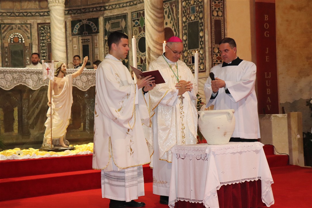 Uslijedila je Krsna služba s blagoslovom vode i obnovom krsnih obećanja te euharistijska služba kojom je privedena kraju liturgija Vazmenog bdjenja.