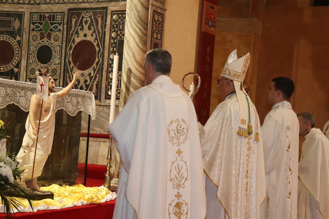 U nastavku svoje propovijedi, biskup se osvrnuo na evanđeoski tekst (Mk 16,1-8), koji govori o ženama koje su se uputile na Isusov grob i koje su prve spoznale da je Isusov grob prazan. Iznenađene i prestrašene požurile su u grad da o tomu obavijeste učenike. Biskup je naglasio da događaj Uskrsa uvijek iznenađuje, da u čovjekovu srcu budi strah i pitanja kao i želju da pronađe istinu i bolje upozna Pisma. Stoga je naglasio: „Čovjekov život se odvija između istine i neistine, između informacija i dezinformacija, između svjetla i mraka, između života i smrti. Samo je pitanje za što ćemo se opredijeliti. Uz to, čovjek čuje i shvaća površno i djelomično, često čuje samo ono što želi čuti. Tako i pamti. Informacije koje šalje i koje prima, nisu cjelovite. Uzmimo samo izjavu mladića u grobu: ‘Uskrsnu! Nije ovdje!’, kako piše sv. Marko. Cjelovita istina o Nazarećaninu glasi: Uskrsnuo je! Nije ovdje! Oni koji prihvaćaju Isusa, koji ga žele vidjeti živa, vjeruju da je uskrsnuo. No oni koji to ne žele, čuju i prihvaćaju samo onaj drugi dio informacije: Nije ovdje!“