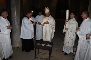 Liturgija Vazmenog bdijenja završena je svečanim otpusnim blagoslovom kojeg je okupljenima udijelio biskup Štironja.