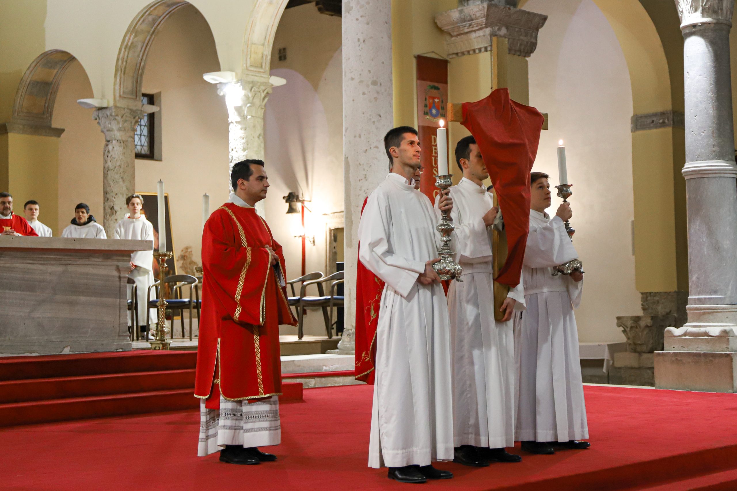 Uz biskupa sudjelovali su generalni vikar preč. Rikardo Lekaj koji je ujedno i župnik pulske katedrale, vlč. Alejandro Castillo Jimenez, vlč. Piergiorgio De Angelis i vlč. Stefano Cataldi. Uz ministrante i bogoslove pomagao je đakon vlč. Ivan Petrašić.