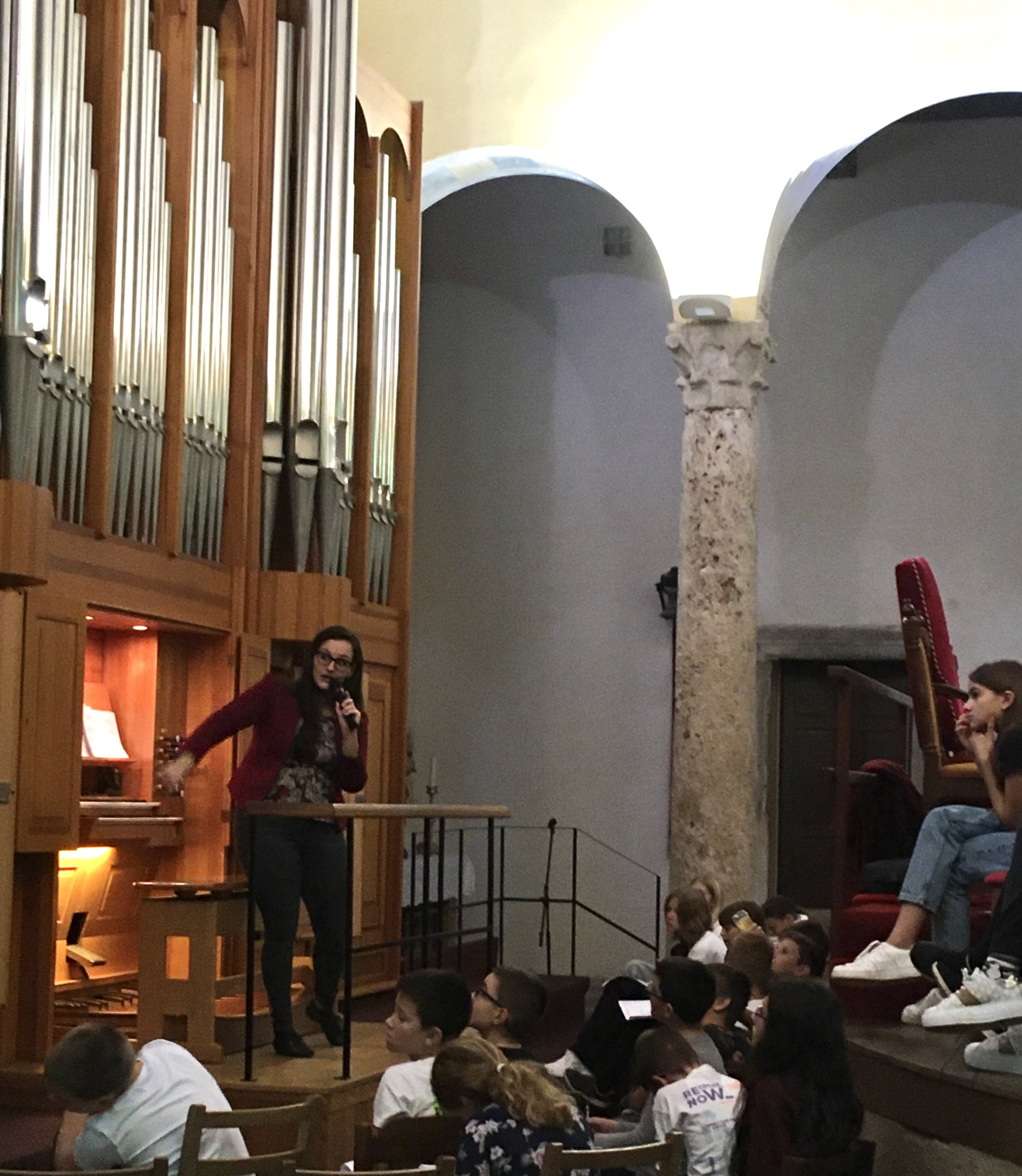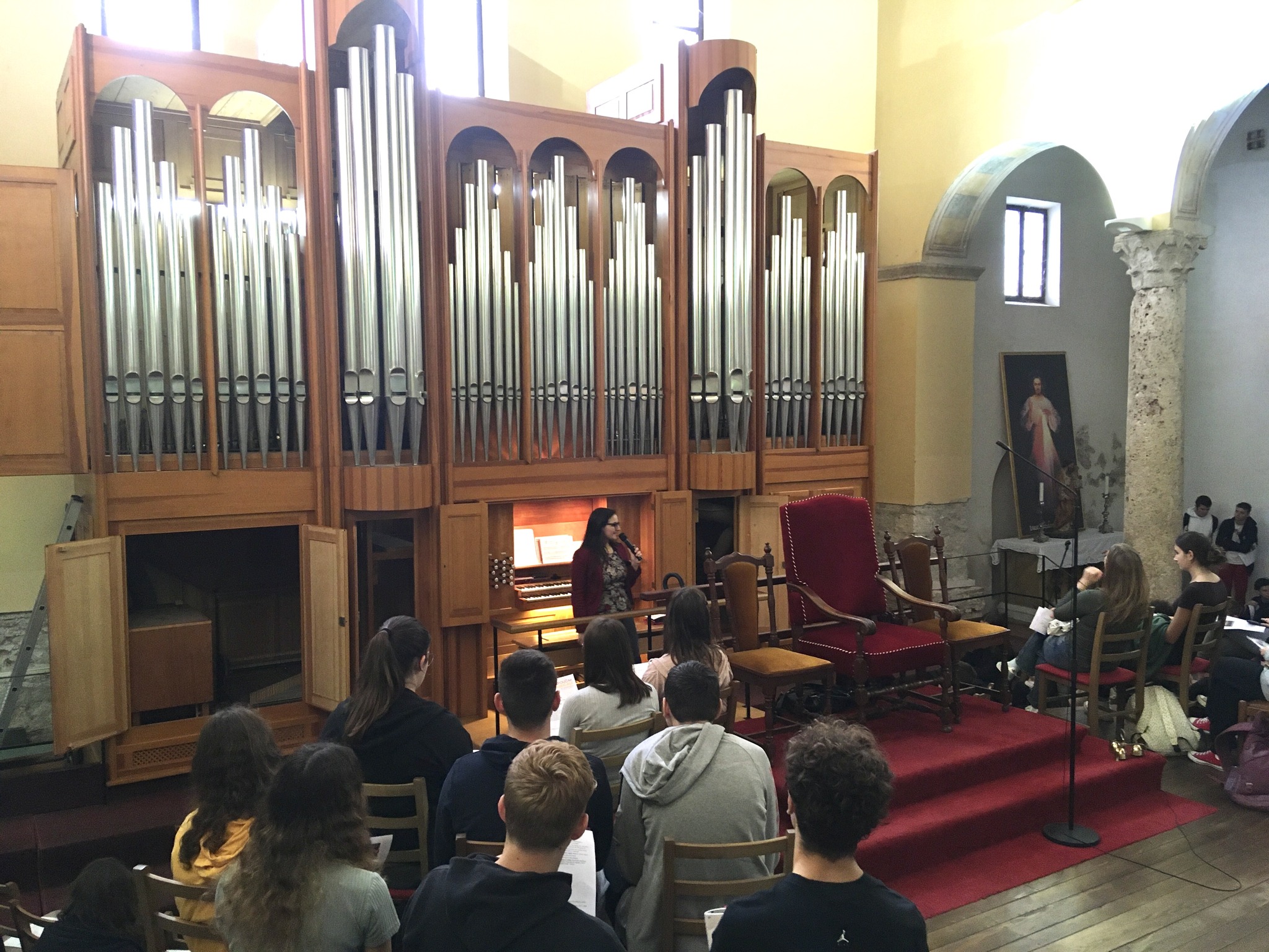 Iznimno poučno i zanimljivo nesvakidašnje predavanje o orguljama održala je pulska orguljašica s amsterdamskom adresom Elena Roce. U 3 termina Glazbenog poučka više od 200 učenika OŠ Šijana i Veruda te Gimnazije Pula pozorno je slušalo i sudjelovalo s različitim pitanjima o ovoj kraljici instrumenata, a oni malo hrabriji i znatiželjniji pokušali su i sjesti za orgulje i isprobati ih.