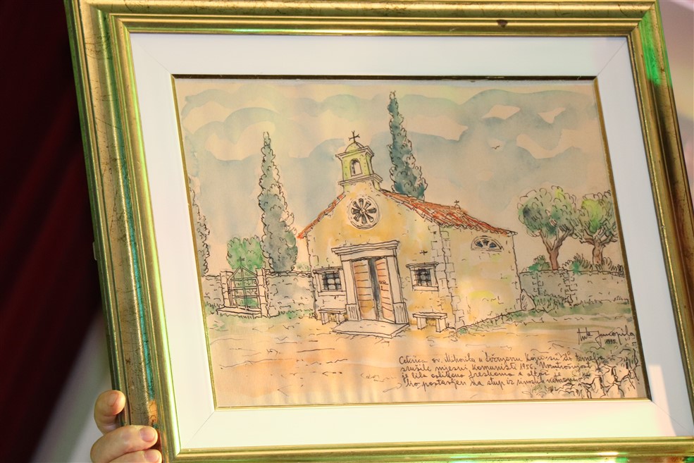 Pokazujući sliku crkve sv. Mihovila, naglasio je, kako je to naslikao iz potrebe, jer su staru crkvicu iz 16. st. koja ja imala freske i kameni dio oltara, jedne noći komunisti srušili uz obrazloženje da je taj kamen potreban za izgradnju jednog zida.