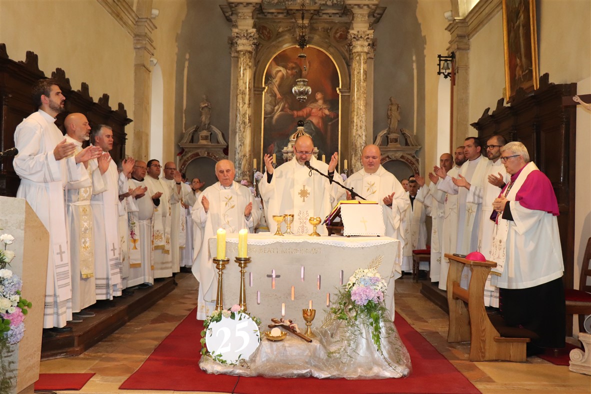 Slavljenik je u uvodnom obraćanju, poželjevši svima dobrodošlicu, pozvao okupljene ne samo da zahvale za njegovih 25 godina svećeništva, već da zahvale za svaku godinu, svaki dan svećeništva svih svećenika, a posebno onih koji su na bilo koji način dotakli naš život. Posebno je pozdravio još jednog ovogodišnjeg svečara, preč. Marijana Kancijanića, koji ove godine obilježava dijamantni svećenički jubilej, 60. obljetnicu svećeništva.