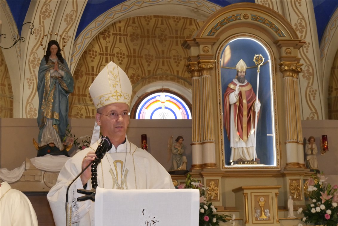Biskup je u prigodnoj homiliji, razlamajući Riječ iz Matejevog evanđelja, kroz prispodobu dva sina koja čovjek šalje na rad u vinograd, okupljenim vjernicima napose istaknuo nekoliko naglasaka za razmatranje. Navodeći negativan primjer pismoznanaca i farizeja biskup je potaknuo okupljene da ne osuđuju one koji su u ranjeni grijehom ako im nisu ni pokušali ublažiti patnju. Nadalje je istaknuo važnost izvršavanja Božje volje, ne riječima, poput sina koji kaže „Evo me.“ pa ne ode u vinograd, već važno je djelima i životom vršiti volju Božju.