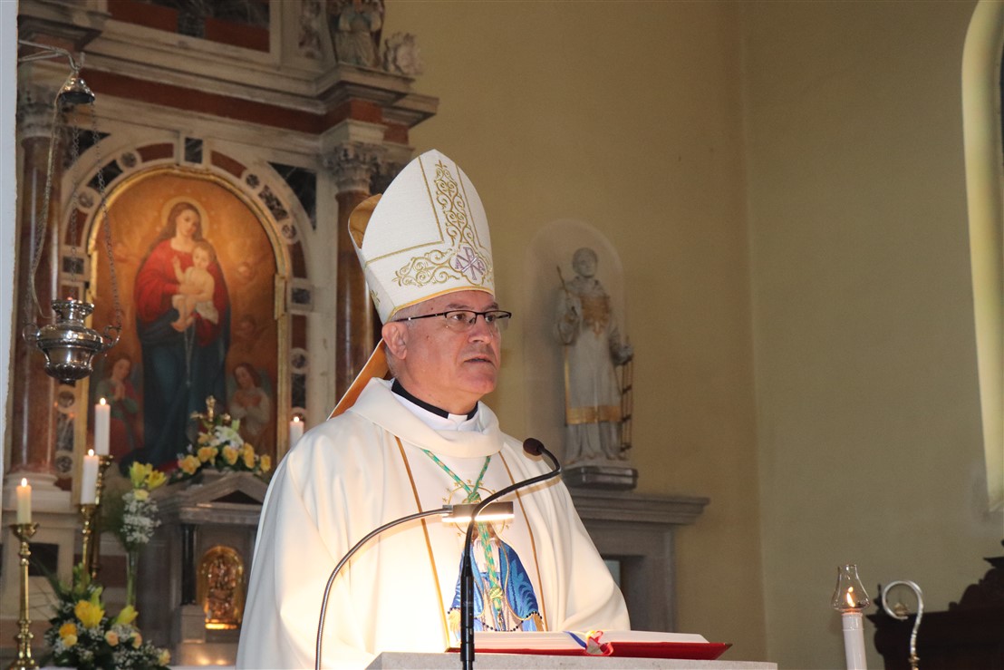 Pozivajući na župno zajedništvo biskup je istaknuo važnost jednodušnosti i sloge koja se napose očituje poniznim služenjem jedni drugima te dodao: „Ako želite biti veliki, služite jedni drugima. Onaj posljednji neka bude prvi, kako nas poziva Isus. U toj školi, braćo i sestre, generacije naše Crkve u Istri i Crkve u Hrvata, odgajale su se upravo na ovoj logici. Iz te logike nikle su sve ove crkve i niklo je ovo društvo koje je utemeljeno na kršćanskim vrijednostima. Po tome je poznata Istra i po tome je poznata Hrvatska, upravo po stoljećima te vjerne nauke koju je Krist preko svojih nasljedovatelja utkao u dušu našega naroda i ove zemlje. Samo zahvaljujući tome mi smo danas ovdje. Vidite koliko znači tradicija!“, naglasio je biskup Ivan pozivajući da je Isusov stil staviti drugoga ispred sebe što je ideal kršćanske kulture i duhovnosti.