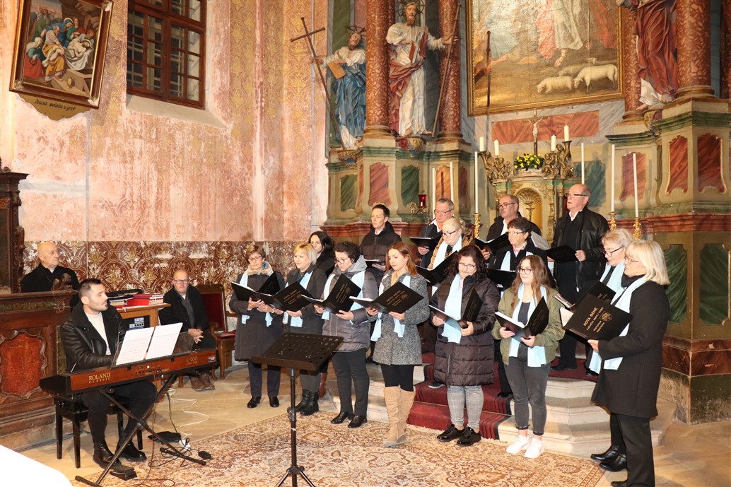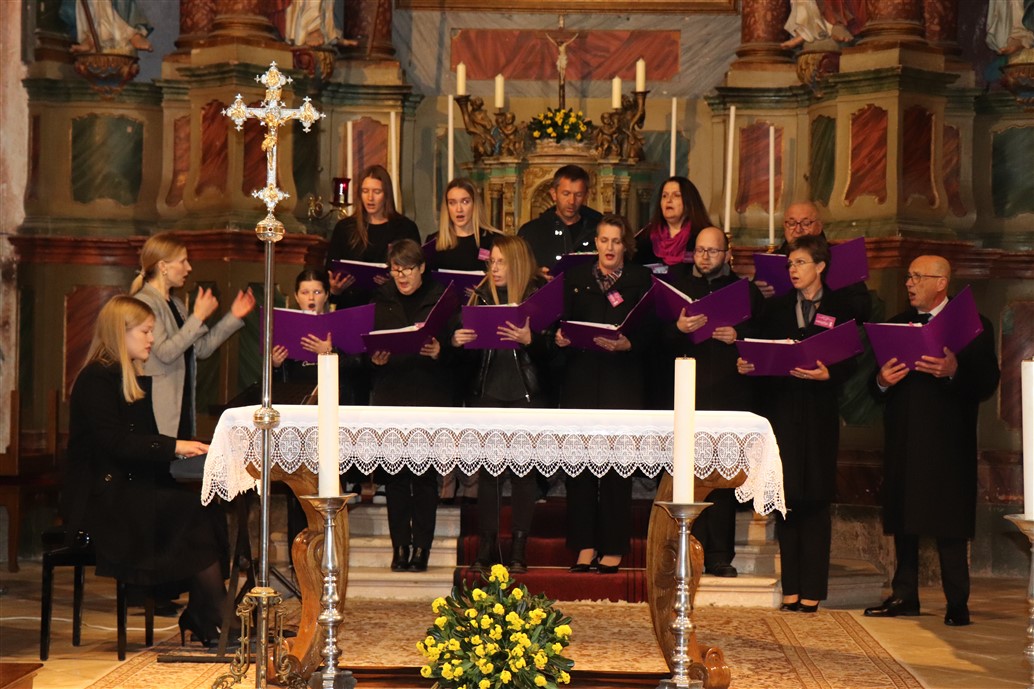 Posljednji je nastupi najveći zbor na susretu, Župni zbor iz susjedne Župe sv. Mihovila u Žminju. Tridesetak pjevača, uz orguljsku pratnju Aleksandre Orbanić i uz dirigiranje Anđele Damjanić, intoniralo je Misu o. Ive Perana „Mariji Majci Crkve“, koju su uvježbali namjenski za prigodu zlatne mise svoga župnika.
