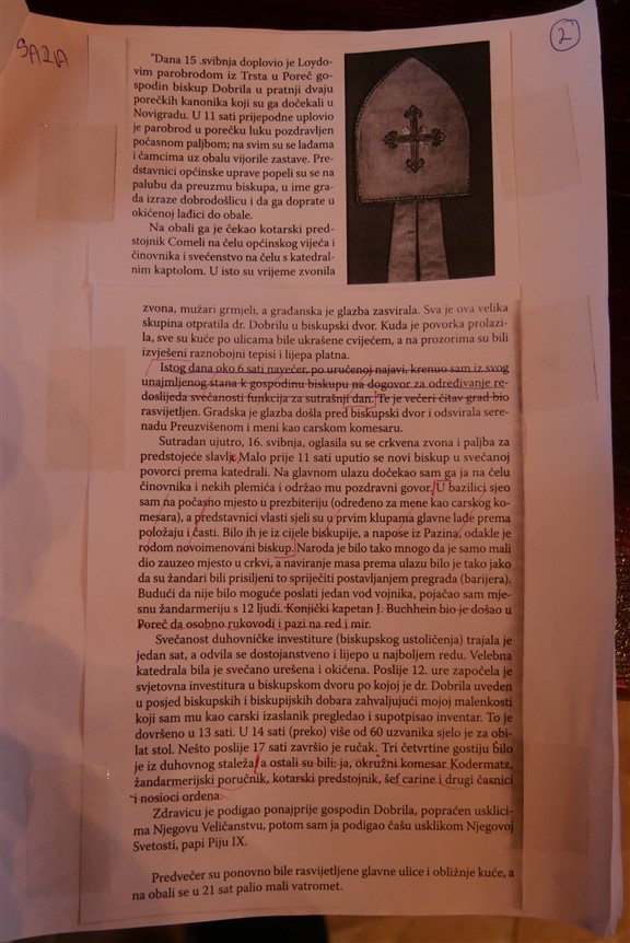 „Ako mi zaboravimo Dobrilu i njegova nastojanja za dobro našega naroda u Istri, onda smo podbacili. Moramo biti svjesni napora naših starih, napora Dobrilina za ovaj narod, da bude pismen, da bude u korak sa drugim narodima, da ima prava koja treba imati. On je napisao molitvenik, naglasio je nadalje župnik, nemojmo nikada zaboraviti da je on bio prije svega biskup, da je pored svih nastojanja za dobrobit naroda, želio nadasve da taj narod ostane vjernički narod, da se moli Bogu, da ide u crkvu, da računa s Bogom u svome životu. Pitanje je to i za nas danas, da li malakše vjera Dobrilina u našem narodu danas?“, naglasio je vlč. Zec.