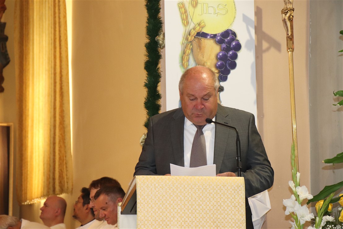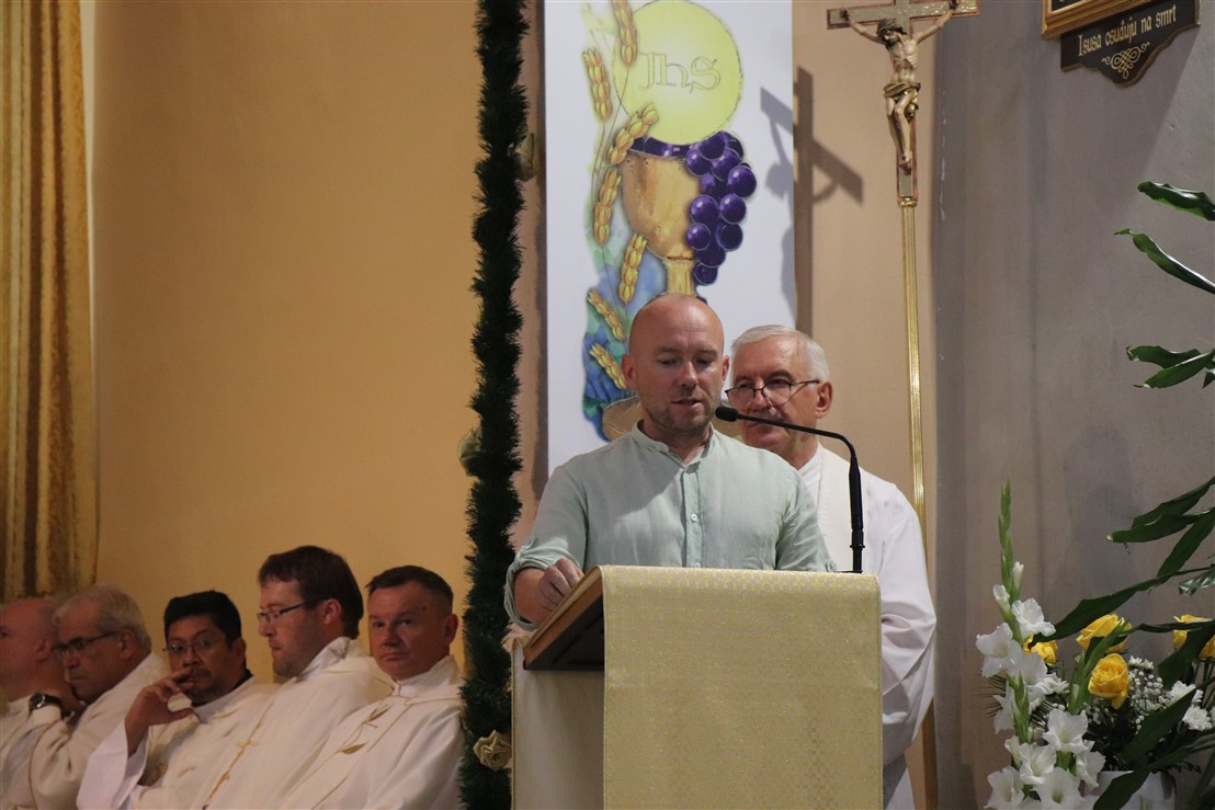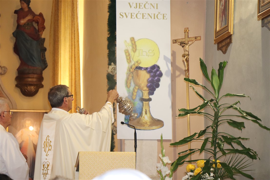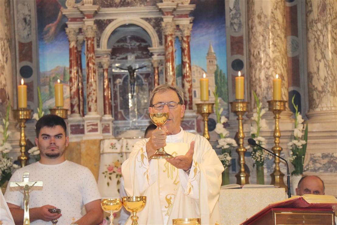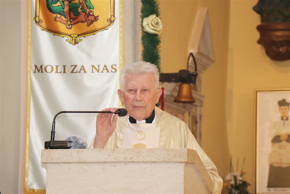 Propovjednik je vjernike podsjetio, da „svećenik nije samo onda kad pričešćuje, kada uči vjeronauk. Svećenik je opečaćen Kristom. „To znači da on u svakom trenutku vjeruje Kristu, i želi svakog čovjeka spasiti. Svećenik jako trpi kad čuje da netko griješi. On trpi kad čuje da se netko razvodi, kad čuje da je neka nesreća, jer trpi Krist u njemu. Naš svečar nije radio samo u službama što sam spomenuo. Ima osjećaj prema svim ljudima. Pjesma kaže ‘ti si svećenik dovijeka’ i to svugdje. Zato smo mi danas ovdje da s Kristom zahvalimo za svećeničku službu. Da zahvalimo sa slavljenikom, s njegovom rodbinom, s našom župom“.