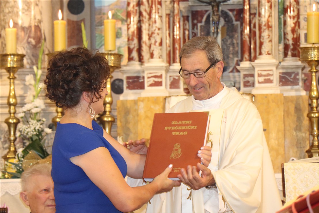 U ime Župe Stari Pazin riječi čestitanja uputila je Vesna Drndić, a u ime župe Sveta Lucija Mirjana Ferenčić koja je svečaru uručila unikatni primjerak velebne foto monografije s više stotina fotografija koje donose uspomenu na najrazličitije životne trenutke, napore, uspjehe i dostignuća preč. Zeca. Knjiga donosi zanimljiv podatak o preko 2000 krštenika koje je kroz 50 godina krstio, te više od 700 parova koje je u ime Crkve vjenčao.