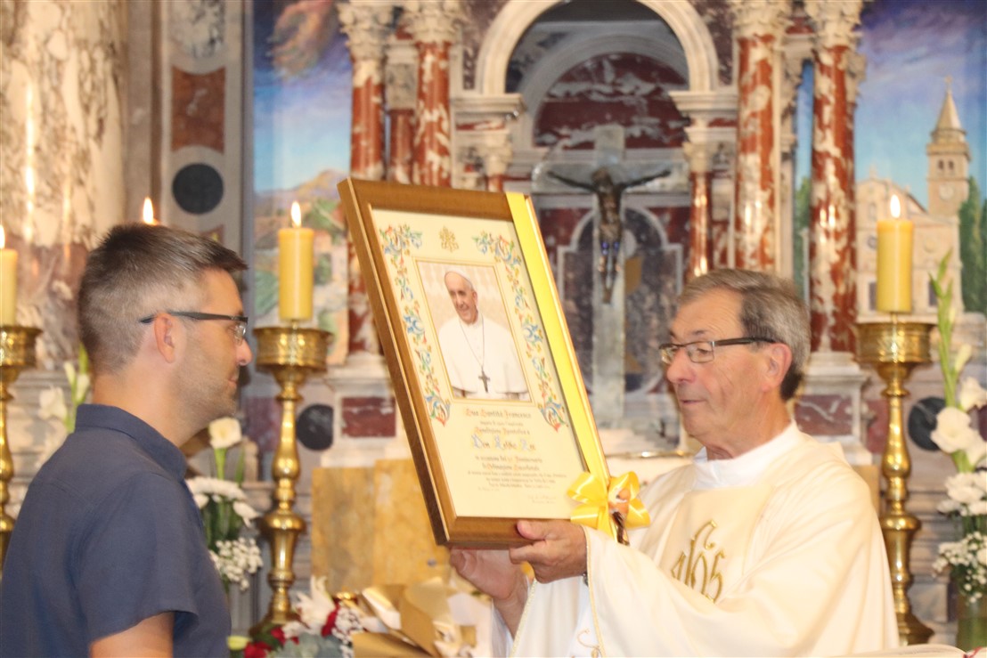 Župnik Rovis je pročitao prijevod teksta Apostolskog blagoslova pape Franje koji je uručen svečaru.