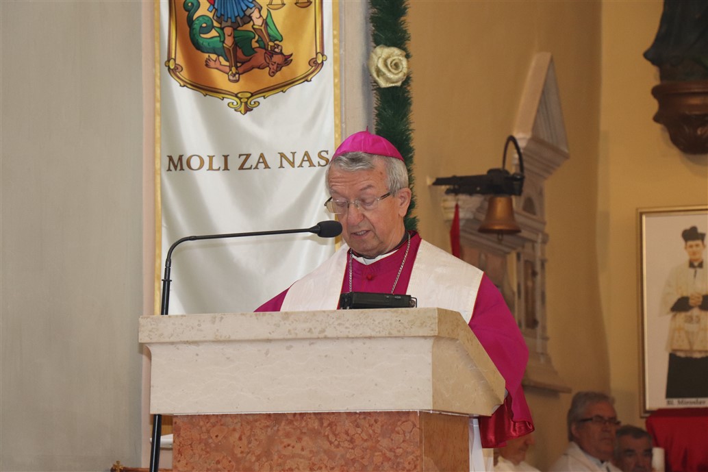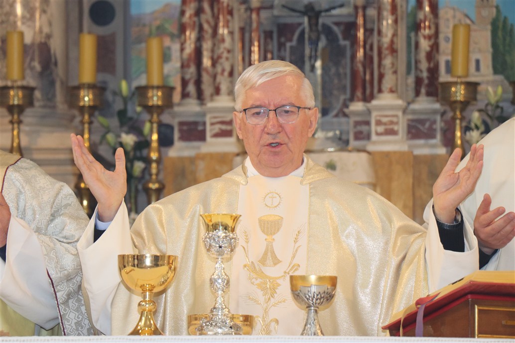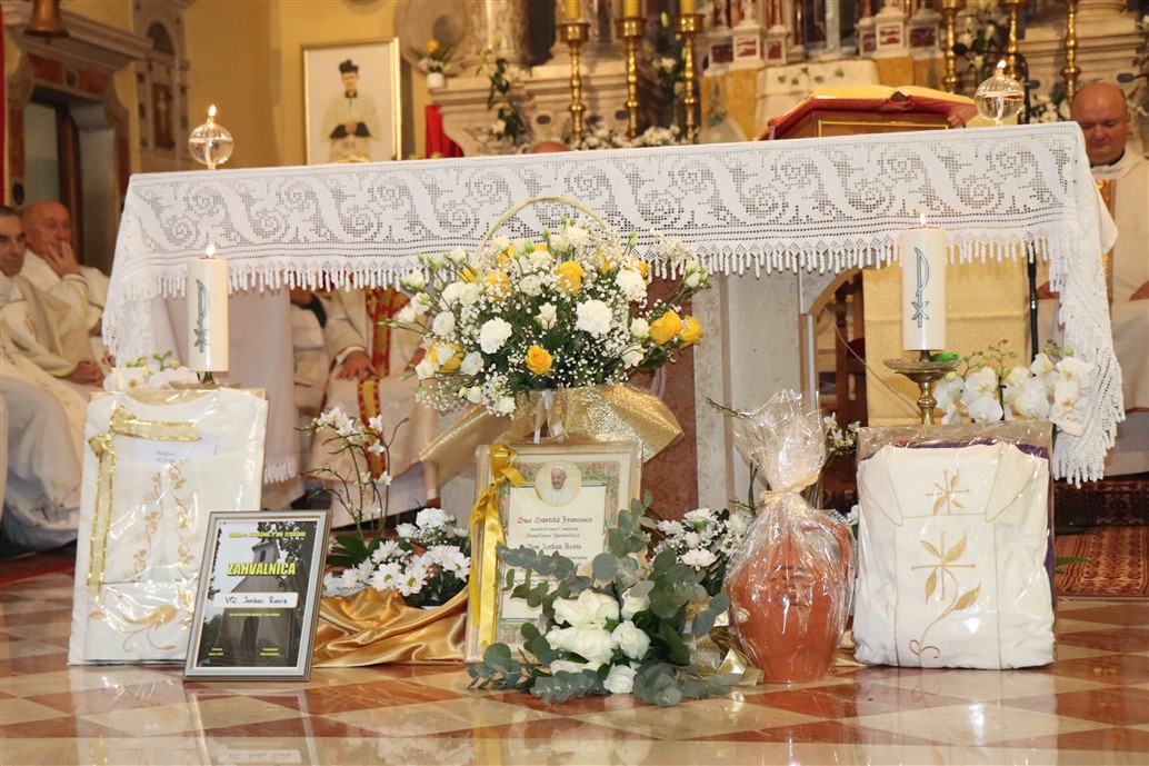 Svi danas želimo zahvaliti dobrom Bogu sa velečasnim Jordanom, ali i za velečasnog Jordana, čovjeka jednostavnoga i plemenitoga, ustrajnoga i vrijednoga u služenju Crkvi i narodu, rekao je biskup, te ukazao na riječi koje je sv. Ivan Pavao II. Izrekao o svećeništva u prigodi svoga 50. godišnjeg jubileja „dar i otajstvo. Dar, nešto čime je svećenik osobno i zajednica vjernika od Boga obdarena; otajstvo nešto što nikad do kraja ne shvaćamo jer je to misterij suradnje s Bogom u spasavanju svijeta. Poznate su nam riječi iz evanđelja, ‘žetva je velika, a radnika malo. molite dakle gospodara žetve da pošalje radnike u svoju žetvu’. Biskupi i svećenici, a i vjernici potrebni su Kristu u službi drugih. Uz druge nakane molimo i za dar novih svećenika, pa i iz ove župe“.