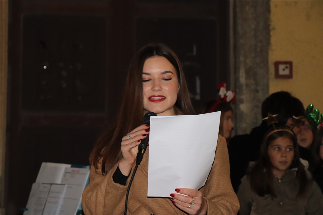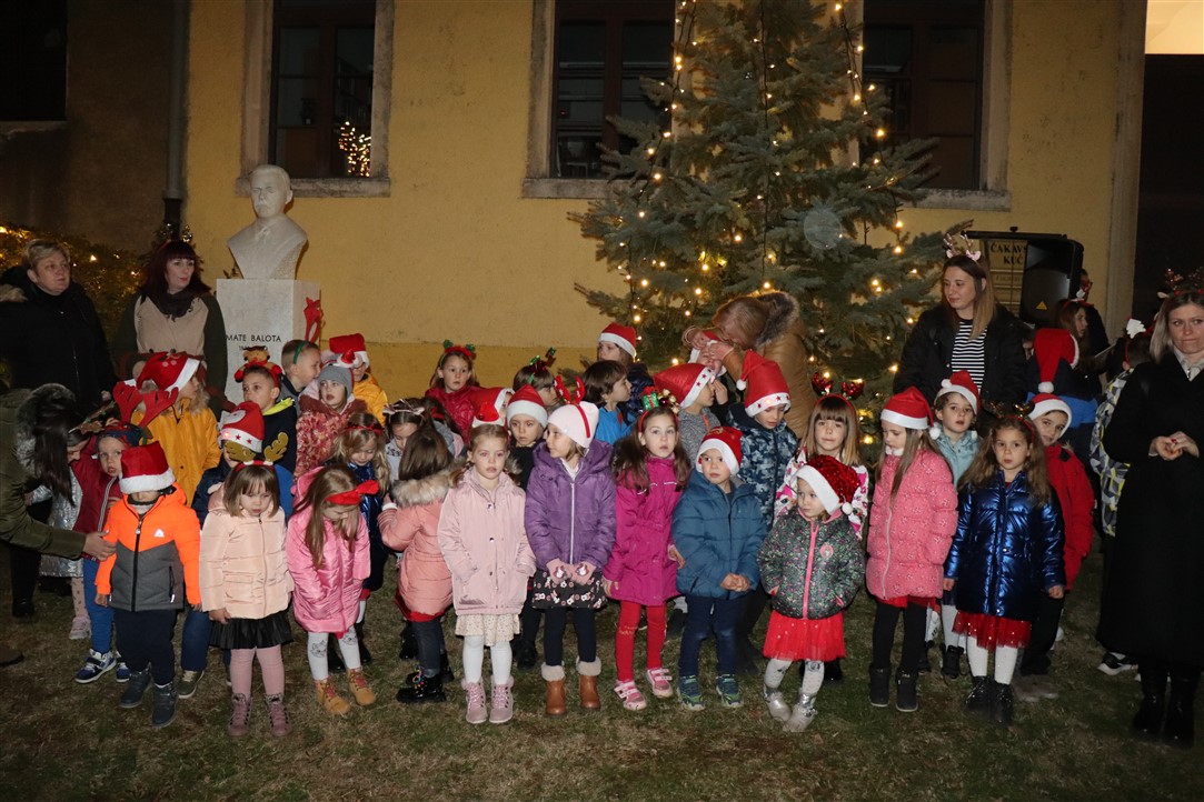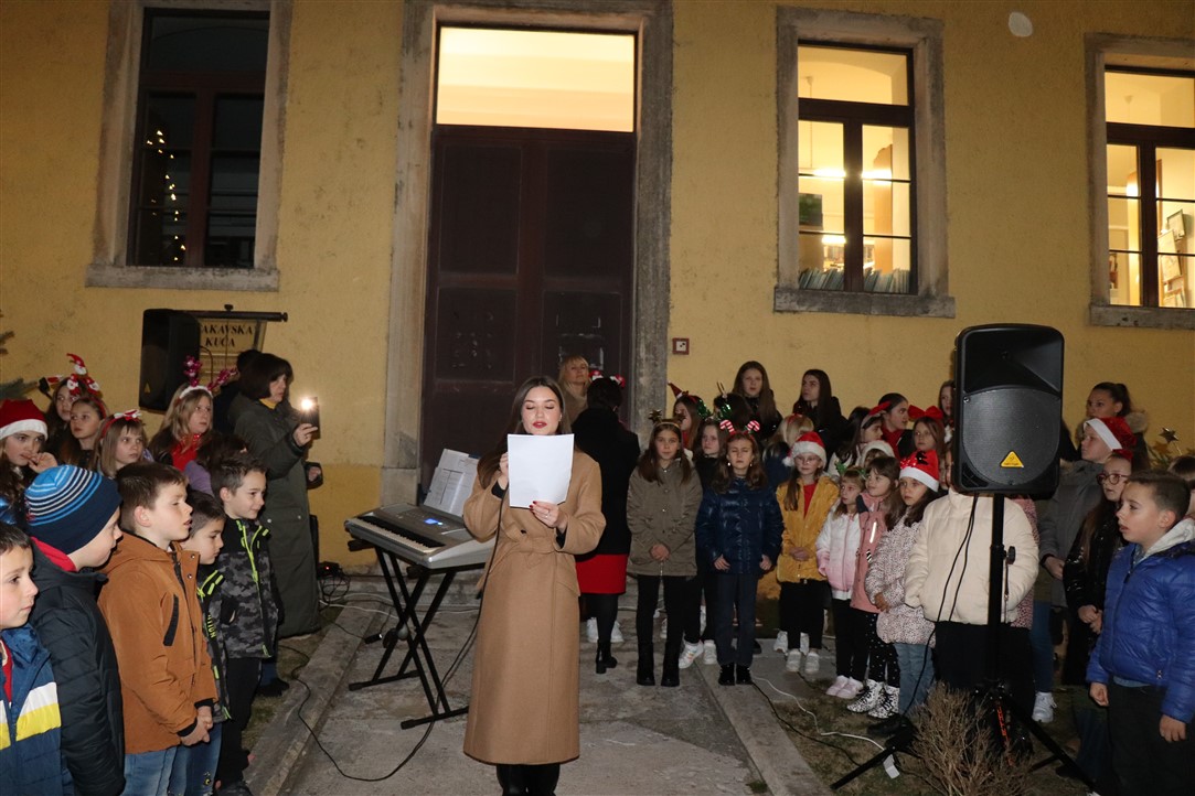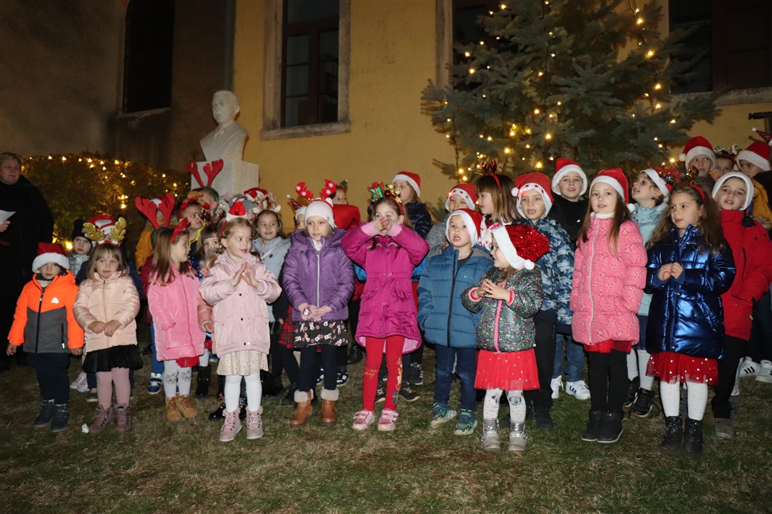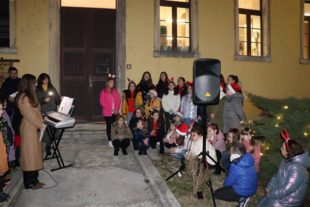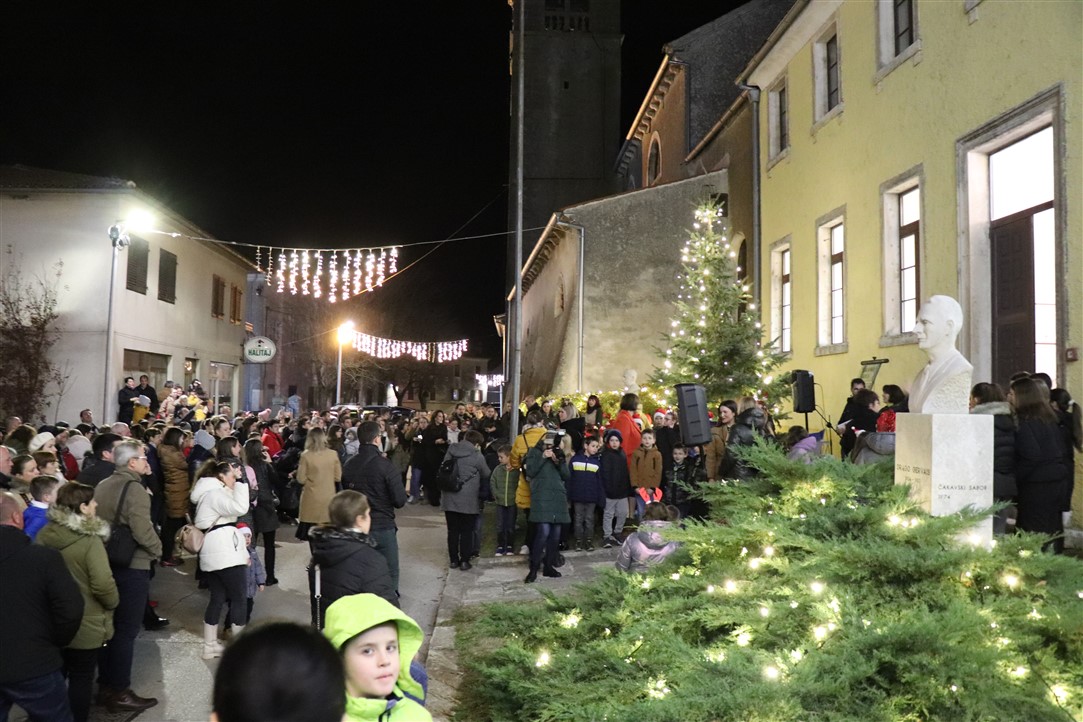 Zbor Osnovne škole Vladimira Gortana otpjevao je, uz instrumentalnu pratnju profesorice glazbene kulture Anđele Damjanić, nekoliko prigodnih pjesama na hrvatskom i engleskom jeziku te je izvedeno i nekoliko recitacija na čakavskom dijalektu. Voditeljica programa bila je Lucija Jelenić. Djeca iz Dječjeg vrtića „Rapčići“ su svima zaželjeli „Sretan Božić“.
