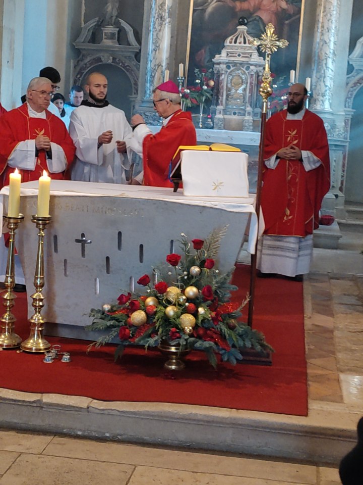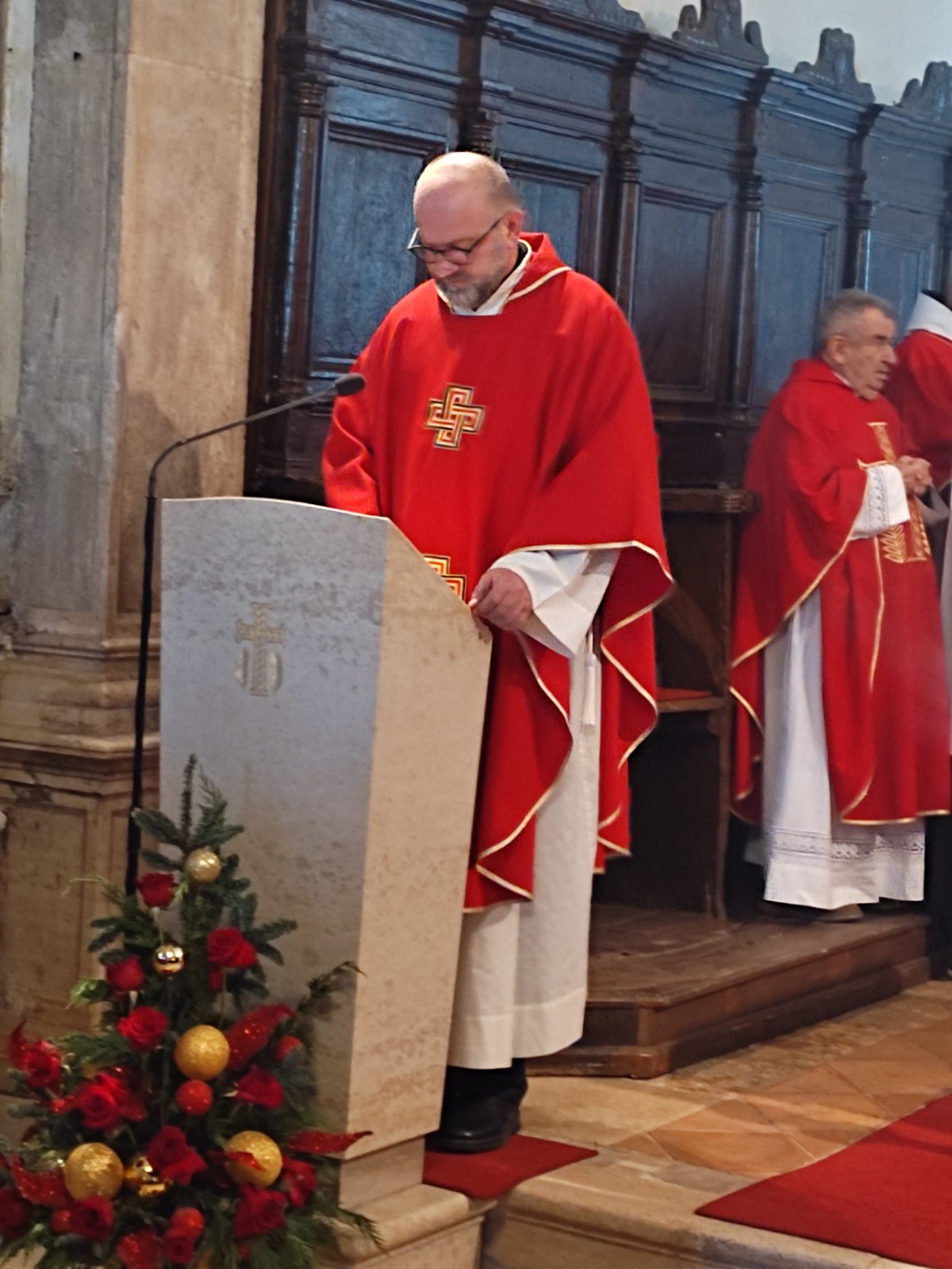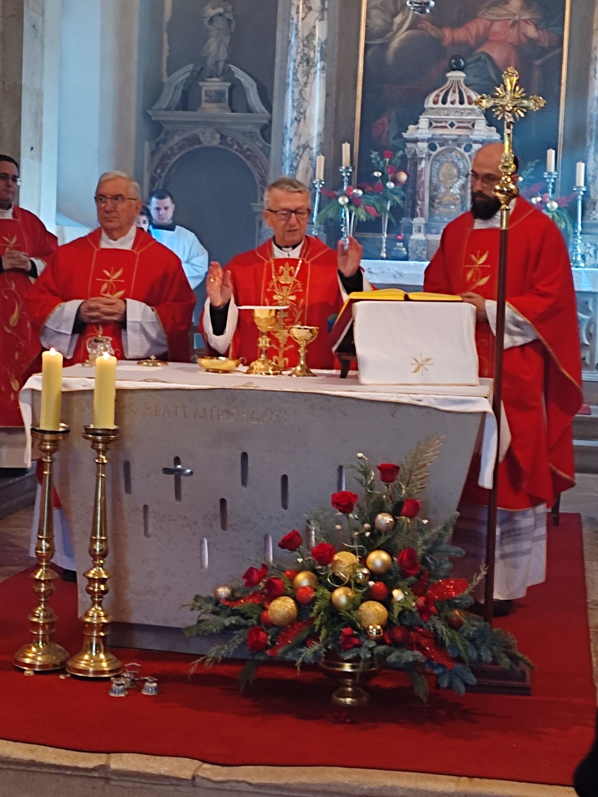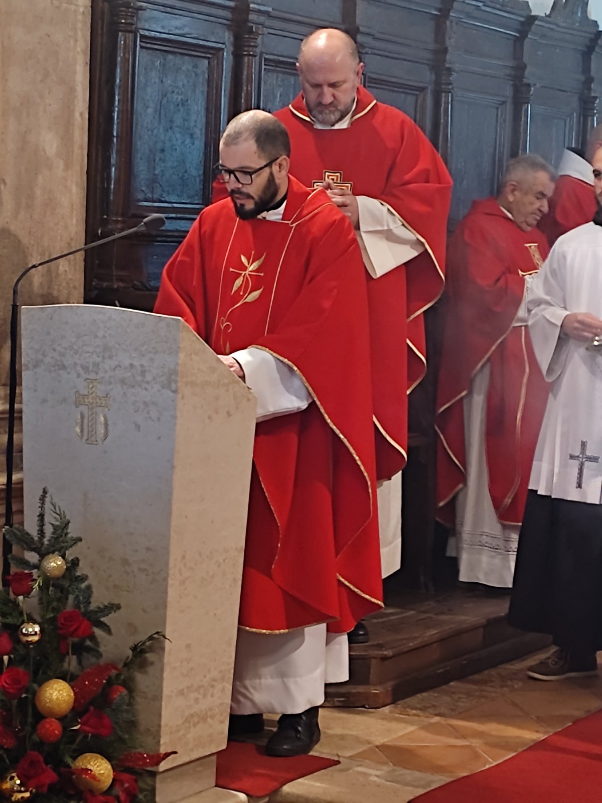 Prigodnu homiliju tom je prigodom izrekao vlč. Maksimilijan Ferlin, svećenik rodom iz Župe Svetvinčenat, koji obnaša službu v. d. ravnatelja Pazinskog kolegija.